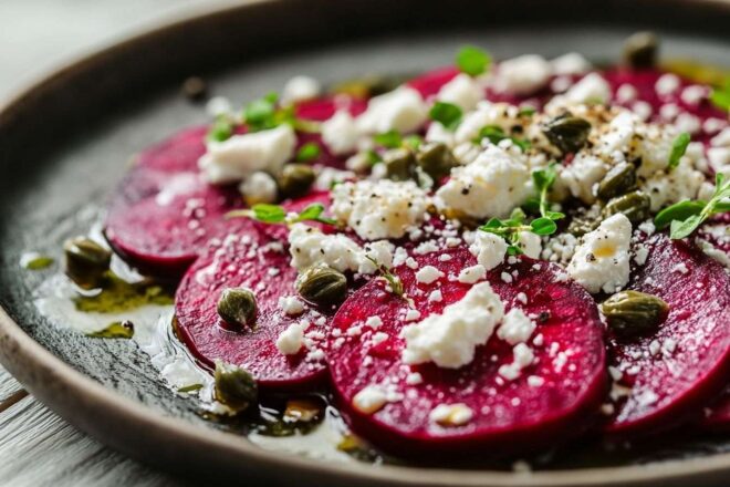Lo cierto es que no hace falta experiencia profesional ni tiempo excesivo para triunfar con esta receta. Basta hornear las betteraves envueltas en papel aluminio mientras se cortan los otros ingredientes. Una vez enfriadas y peladas, se laminan finamente y se disponen artísticamente sobre una fuente; el resto de componentes añade matices tanto visuales como gustativos. Este tipo de elaboraciones —simples pero llenas de personalidad— conquistan por su capacidad de prolongar el espíritu ligero del verano incluso cuando el termómetro baja.